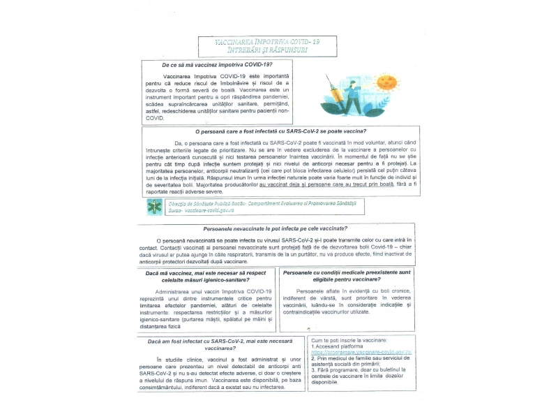VACCINAREA ÎMPOTRIVA COVID-19, ÎNTREBĂRI ȘI RĂSPUNSURI